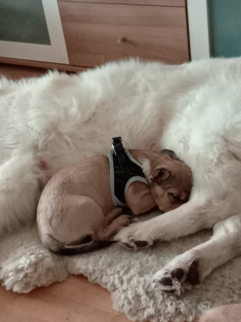 Wie auch immer, Chewie wurde an diesem Morgen an der Leine geführt und wurde dann wieder in Einzelhaft verbannt, Boris wollte ihn immer noch beseitigen oder notfalls frei lassen und dann wegfahren und dann so tun, als hätten wir nicht gemerkt, dass er nicht ihm Auto ist, um dann zu überlegen, ob eine Rückfahrt zu dieser sehr sehr großen Wiese überhaupt sinnvoll wäre, um ihn einzusammeln, wegen dem CO2-Fußabdruck…smile. Boris hatte manchmal wirklich tolle Ideen, aber sie scheiterten dann doch immer an meinem, manchmal sogar an seinem moralischen Grundsätzen!